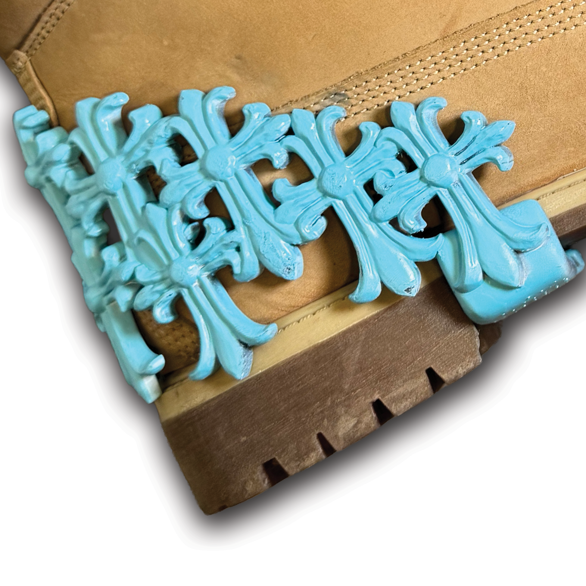 The Offbeat Boot Attachment adds sculptural detail and bold color contrast to your Timberland-style boots. Designed for a secure friction-fit beneath the heel, the piece enhances your footwear without altering comfort or structure. Each attachment brings a refined yet expressive touch, elevating everyday wear into statement style.